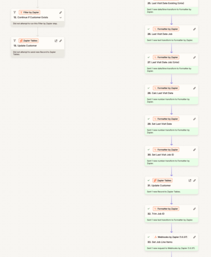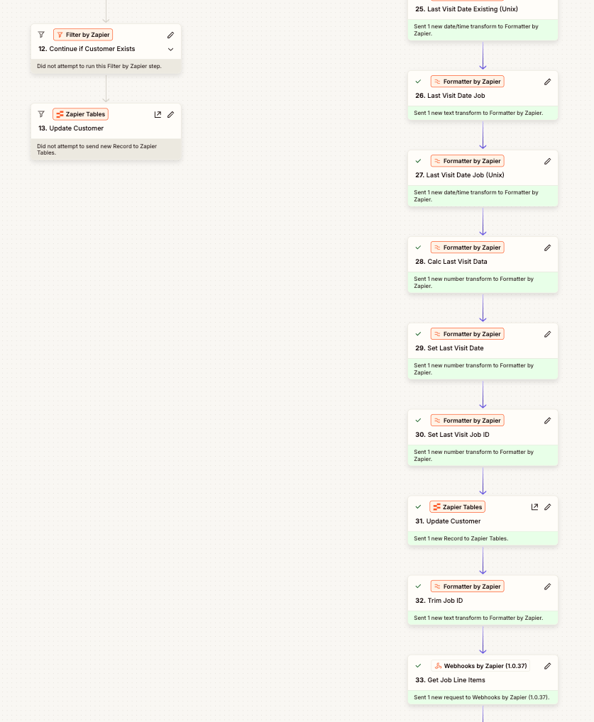 At the core of the solution was a webhook-driven data ingestion pipeline that continuously synchronized customer and job data from Housecall Pro into a centralized data store using Zapier Tables.